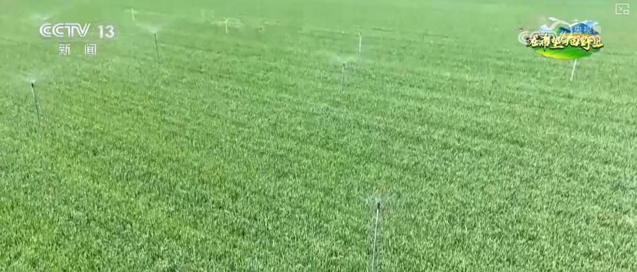 在周口太康縣老冢鎮的萬畝高標準農田裏,種植户手中的遙控器輕輕一摁,田間的可旋轉智能噴槍便開始勻速旋轉,噴灑出的傘狀水霧滋潤着麥苗,為小麥提供水肥。