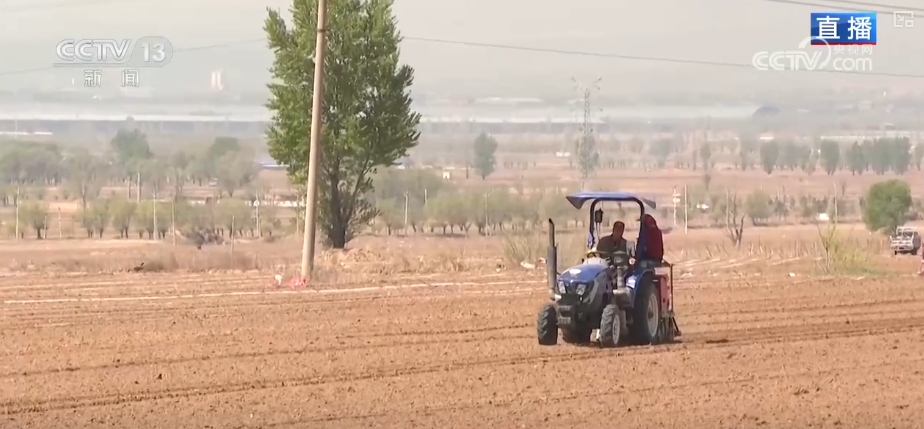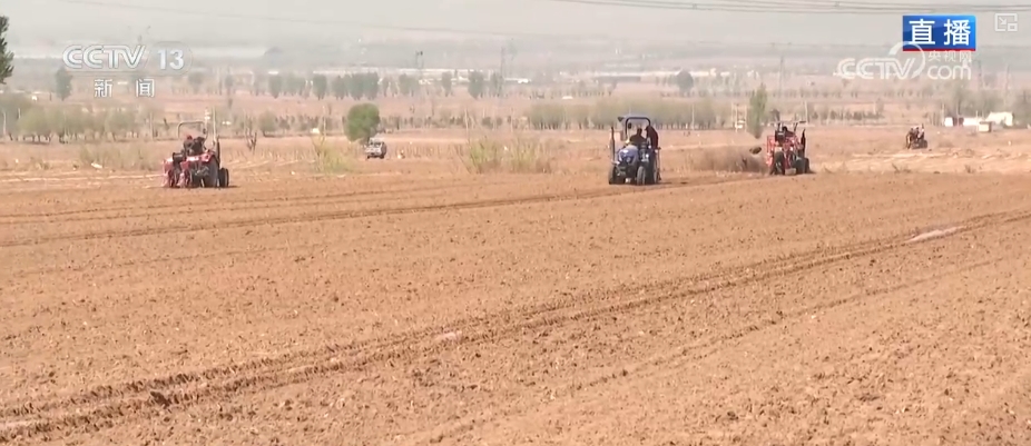 在山西朔州山陰縣黃花梁富硒穀子種植基地,農機手正駕駛着不同功能的農機設備,在田間地頭開展翻地、覆膜、鋪設滴灌帶、播種等一系列的作業。