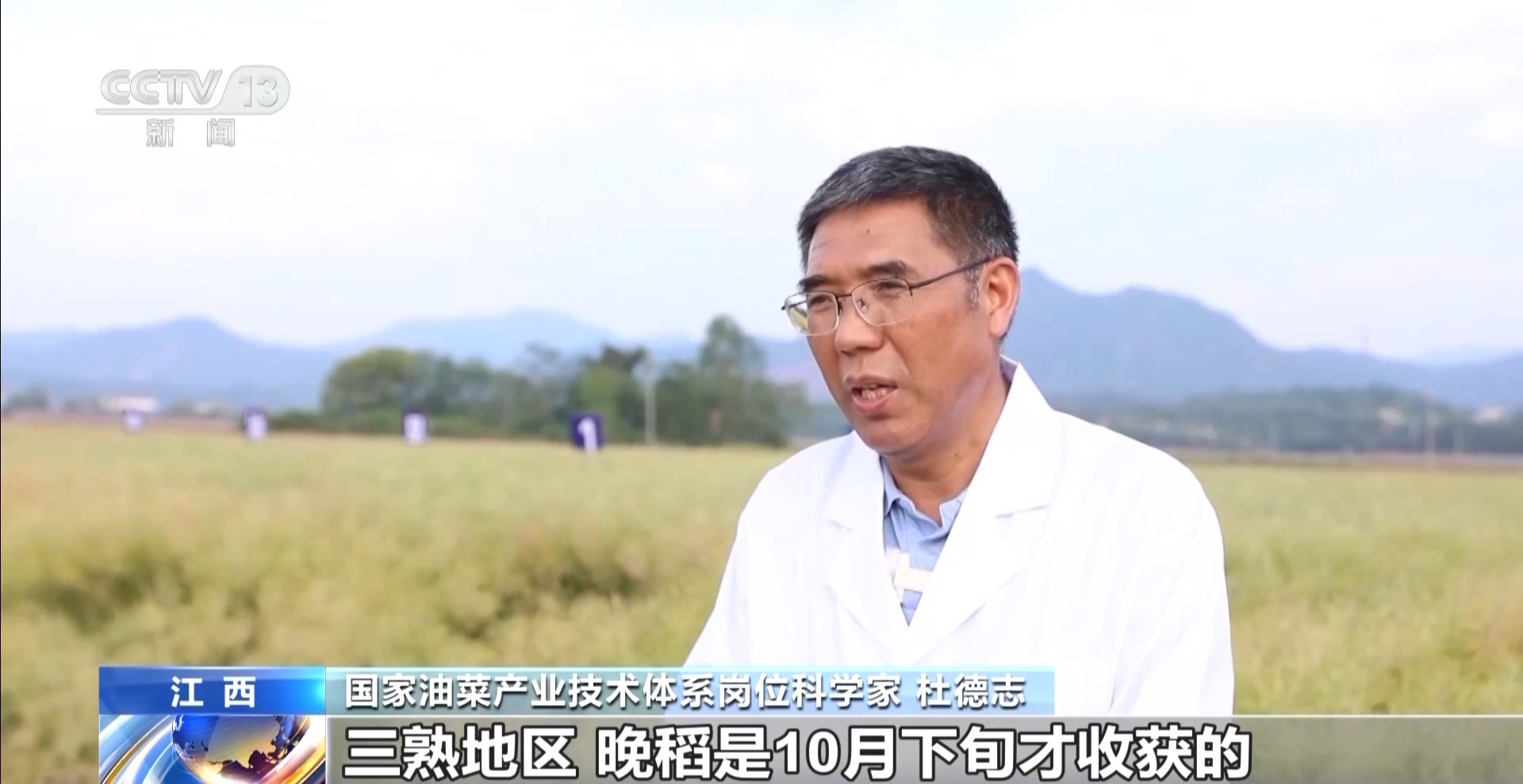 *國家油菜產業技術體系崗位科學家 杜德志:*三熟地區,晚稻是10月下旬才收穫的,早稻是4月20日左右就要插秧了,只有180天,所以我們短生育期品種,必須滿足這個時間的要求。