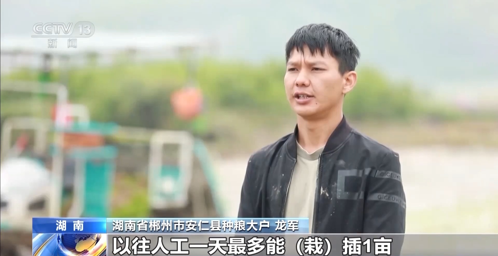 *湖南省郴州市安仁縣種糧大户 龍軍:*油菜收割後種下早稻,以往人工一天最多能栽插1畝,現在有了機械一天可以插30畝,效率翻了近30倍,油菜秸稈還田還能替代化肥,預計早稻畝產能提高2%。