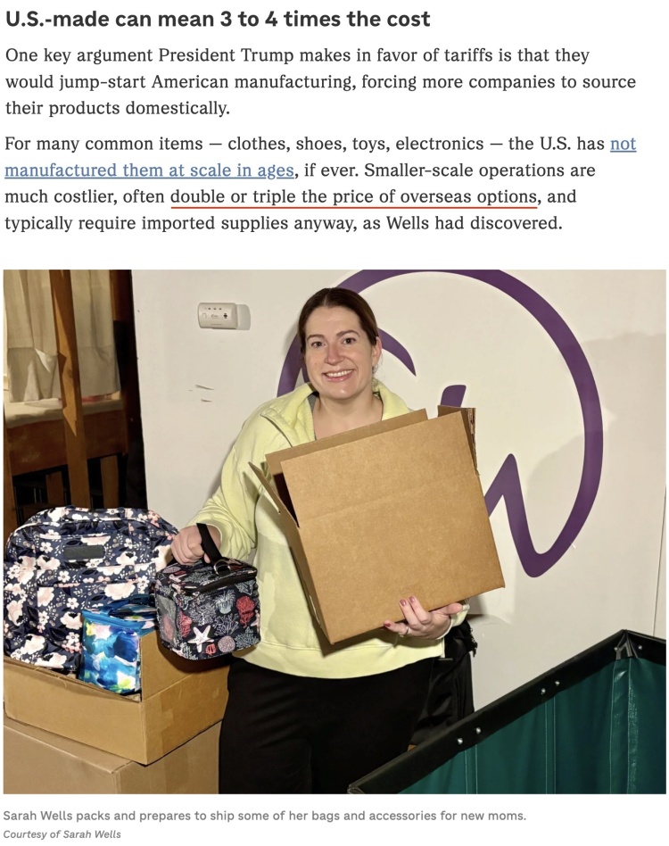 美媒指出,衣服、鞋子、玩具、電子產品這些普通商品,美國國內就算有生產,也已經很長時間沒有大規模生產了。小規模的運營成本要高得多,通常是海外選擇價格的兩倍或三倍,而且通常無論如何都需要進口供應。