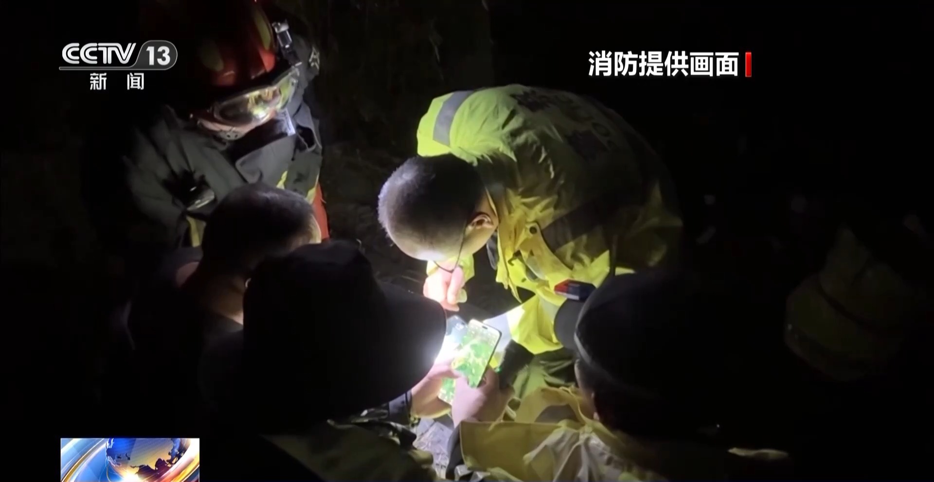 在嚮導的帶領下,消防人員沿着最優路徑接近被困人員。山路狹窄,林木縱橫,山崖陡峭碎石多,消防人員接連翻越兩座山頭,終於在晚上9點多找到了兩名被困人員,所幸兩人沒有受傷。
