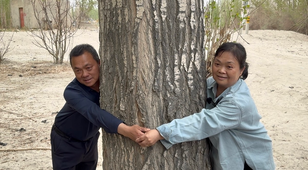 【環球網報道 記者 李梓瑜】“這是我爸最早栽的第一批樹,大概周長有3米多,距現在將近有30多年了……”4月25日,在新疆和靜縣哈爾莫敦鎮哈爾莫敦村,付喜梅和付温平姐弟倆輕撫着父親付志周種下的第一棵樹。當年這棵在風沙中搖曳的小樹苗,如今枝繁葉茂、樹幹粗壯,需兩人合抱才能丈量其周長,同時這裏也成為了萬畝綠洲的起點。