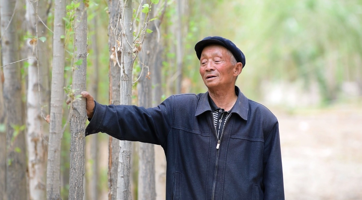 付志周1943年生於河南省通許縣,1965年他紮根新疆和靜縣哈爾莫敦鎮哈爾莫敦村務農,2024年因病去世。上世紀八十年代,他承包47畝地種莊稼,常因風沙絕收。1984年起他帶着全家在自家地邊種樹,用牛車拉苗、鐵鍬挖坑,反覆試驗後選定新疆楊,十幾年拓出100多畝林地。
