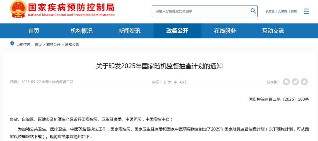 國家疾控局等3部門近日聯合發佈醫療衞生領域《2025年國家隨機監督抽查計劃》。相較於2024年計劃,2025年計劃在監管範圍等方面作出調整,新增互聯網診療、精神衞生等監管領域,並首次明確打擊網絡“醫托”等新型違法行為,進一步強化公共衞生和醫療秩序治理。