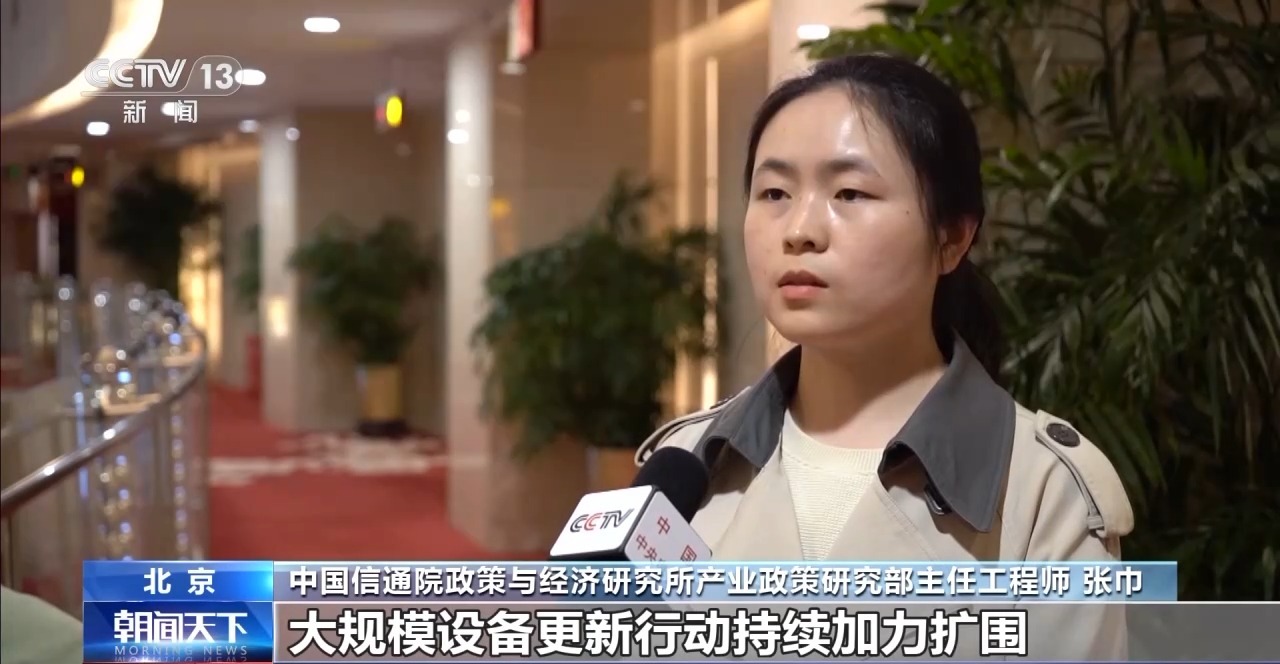 *中國信通院政策與經濟研究所產業政策研究部主任工程師張巾:*一年多來,大規模設備更新行動持續加力擴圍,各類生產設備、服務設備的更新和技術改造,有力促進產品品質穩步提升、場景不斷豐富,也帶動了相關產品所在行業的效益提升。