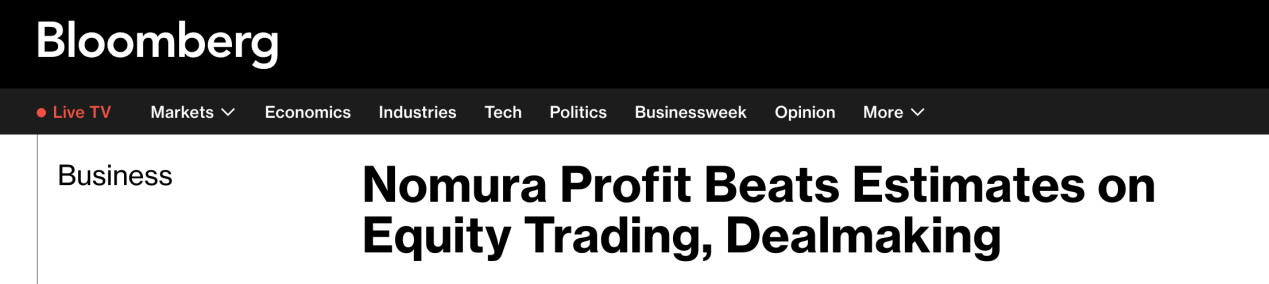 【環球網財經綜合報道】據彭博社消息,日本野村控股公司(Nomura Holdings Inc)上季度的利潤增長超過分析師的預期,因為這家日本最大的券商與華爾街銀行一樣,從波動的股市中獲得了交易收益。