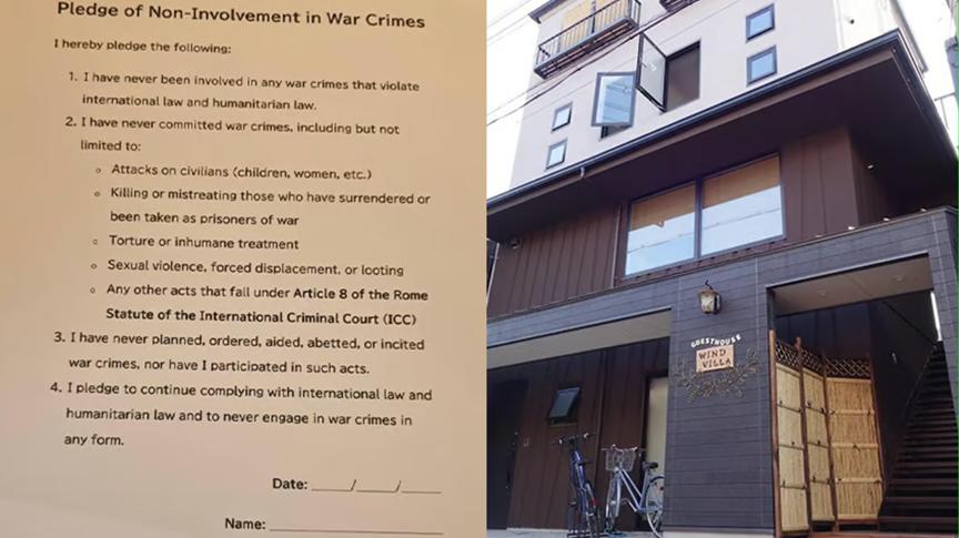 日本一酒店讓遊客籤戰爭罪保證書 圖源:以色列媒體