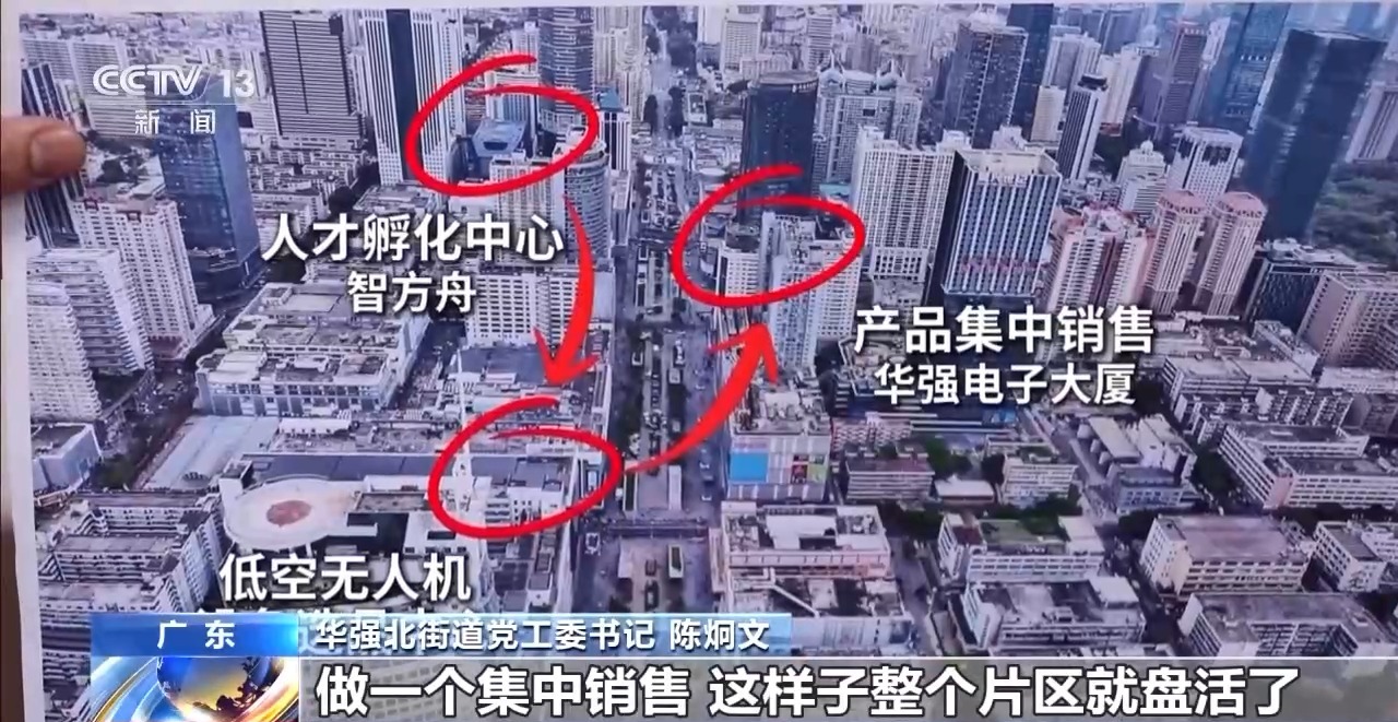 *華強北街道黨工委書記 陳炯文:*這裏有一個人才孵化中心,小樣生產完以後會到這個選品中心,來做一個集成推廣展示,最後的產品會在華強電子大廈做一個集中銷售,這樣子整個片區就盤活了
