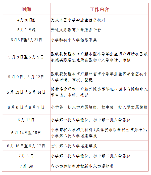石景山區小學入學工作日程安排↓