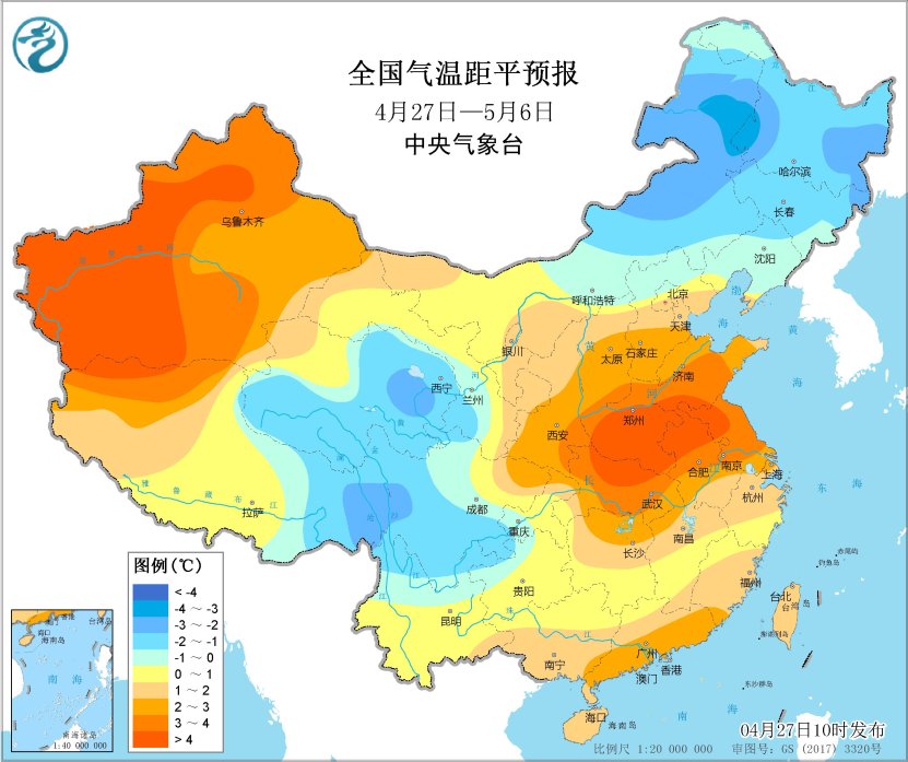 未來10天(4月27日-5月6日),江南南部、華南以及貴州等地累計降水量有30~60毫米,部分地區有80~120毫米,局地超過150毫米;青海北部和東部、內蒙古東北部和東北地區東部等地的部分地區累計降水量有10~20毫米;上述大部地區累計降水量較常年同期偏多2~6成,局地偏多1倍以上。