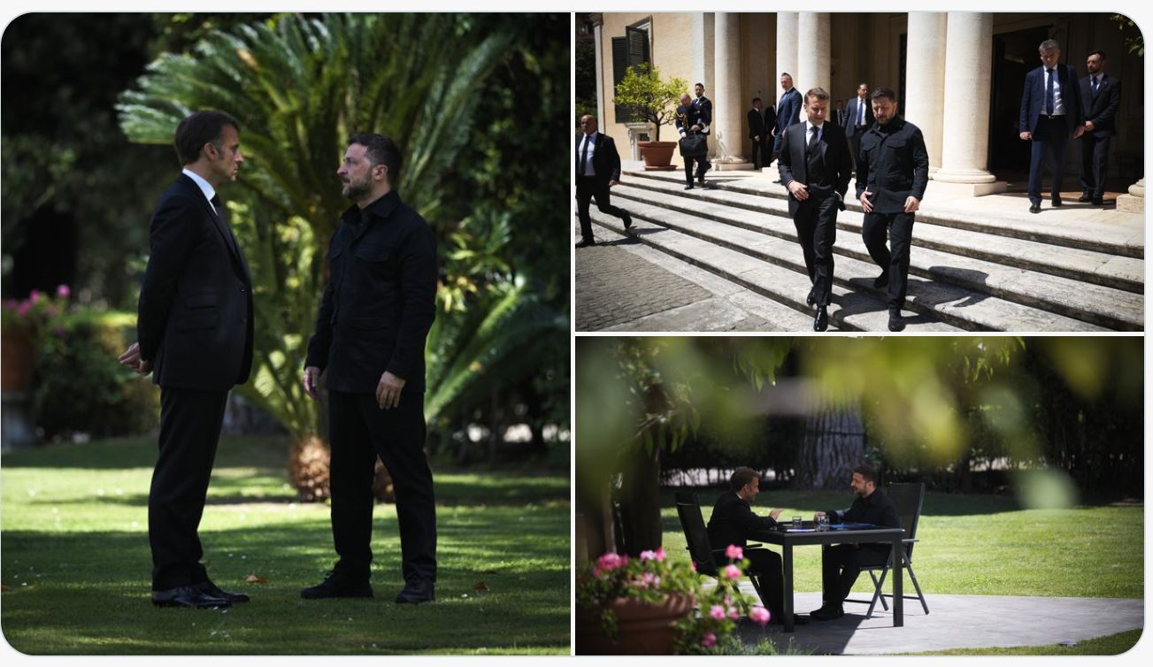 △當地時間2025年4月26日,烏克蘭總統澤連斯基在羅馬與法國總統馬克龍舉行會晤。(圖自澤連斯基社交媒體)