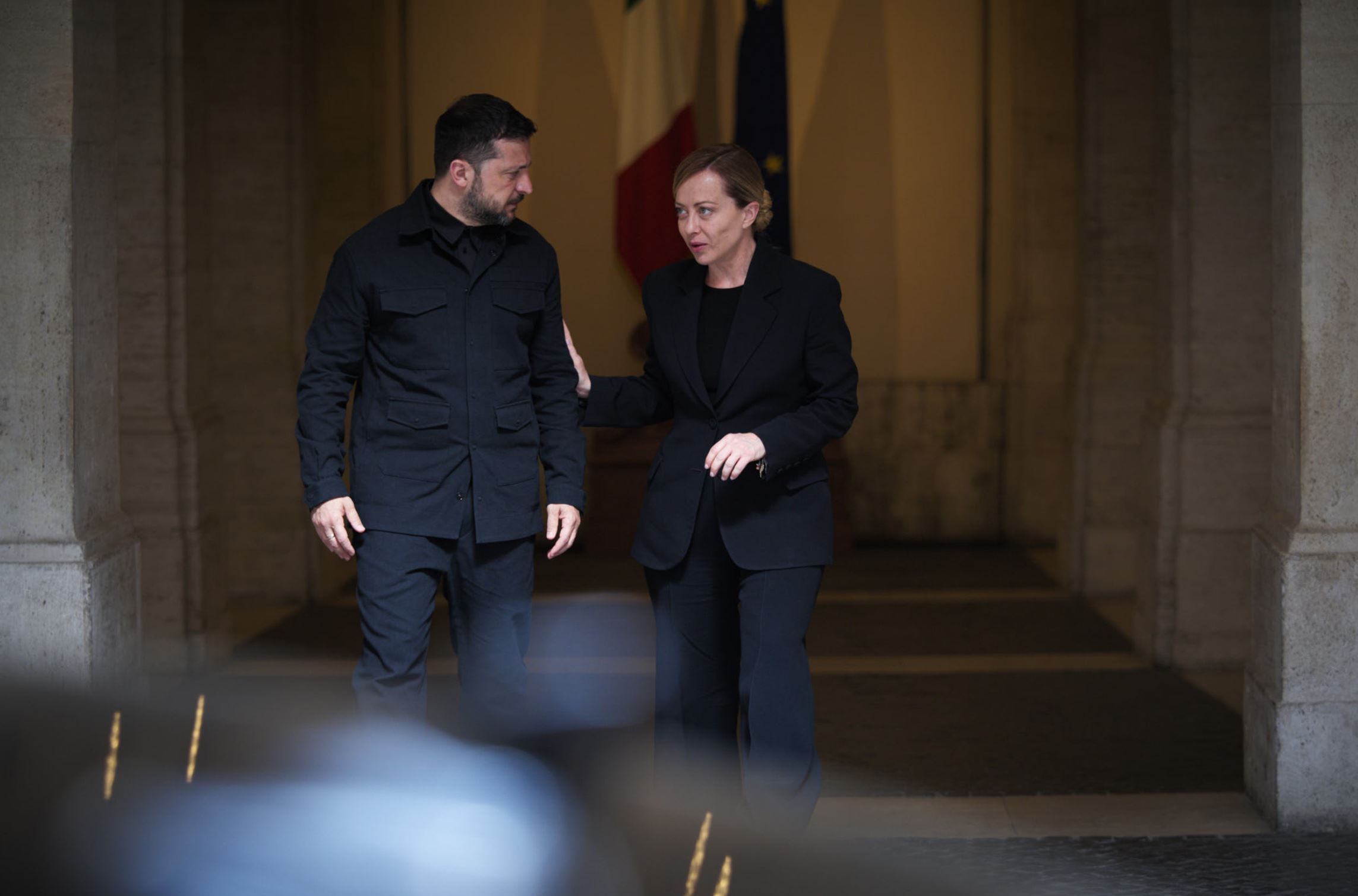 △當地時間2025年4月26日,烏克蘭總統澤連斯基在羅馬與意大利總理梅洛尼舉行會晤。(圖自澤連斯基社交媒體)