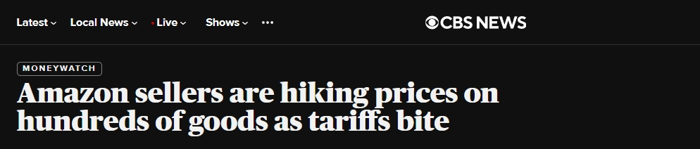 美國哥倫比亞廣播公司4月25日報道稱,4月第二週以來,美國電商亞馬遜平台上的賣家已經*上調了近1000種商品的價格,平均漲價幅度接近30%。*報道援引價格分析軟件工具公司負責人的話報道稱,除了關税影響外,沒有其他原因可以解釋價格上漲。