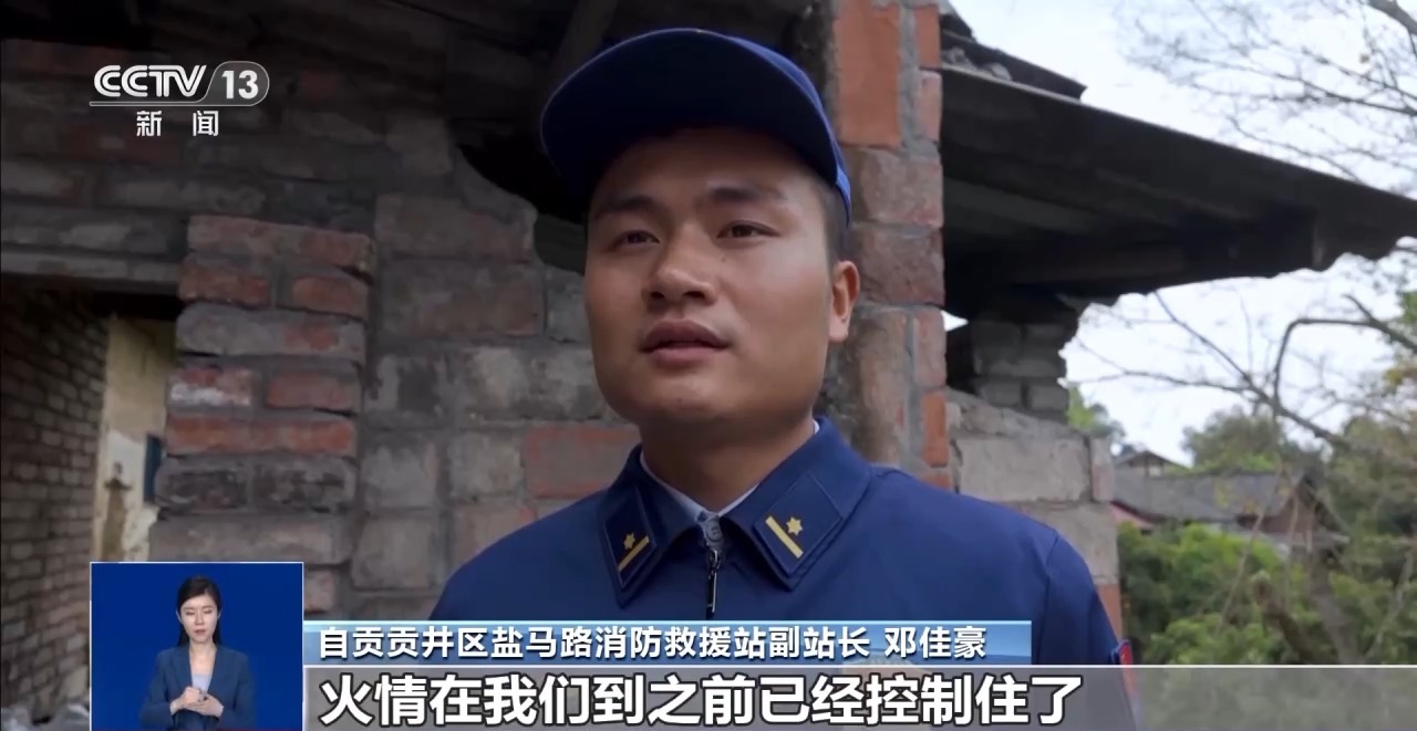 *四川自貢貢井區鹽馬路消防救援站副站長 鄧佳豪:*是村民的廚房着火了,火情在我們到之前已經控制住了,我們差不多花了十分鐘左右撲滅明火、排除隱患。整體來看,火情不大,過火面積也不大,整個過程中沒有人員傷亡和過大的財產損失。