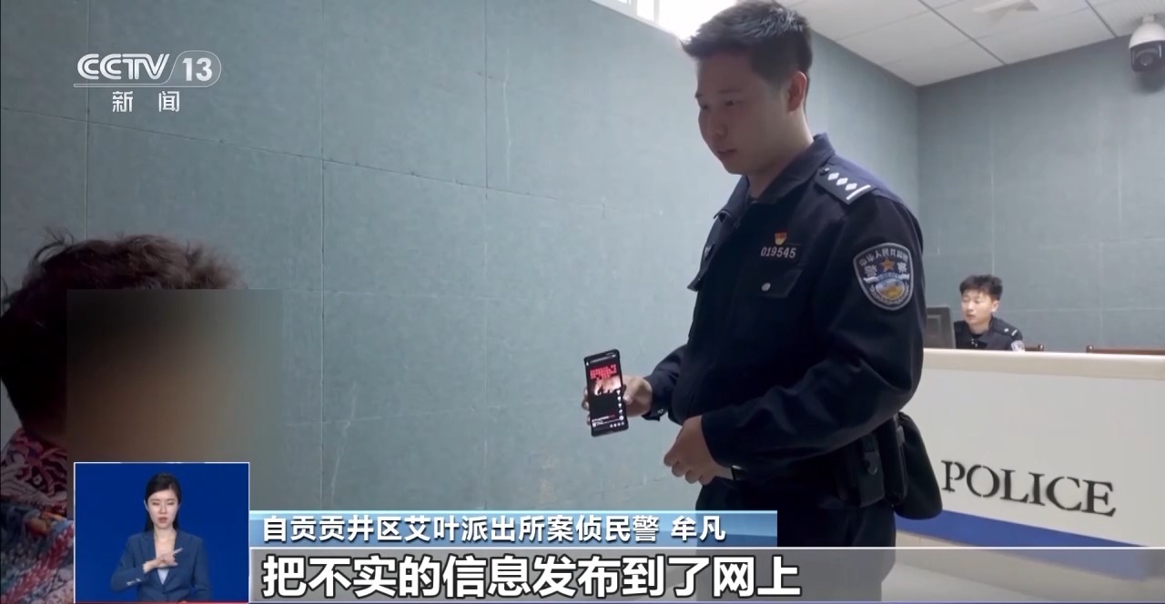 *四川自貢貢井區艾葉派出所案偵民警 牟凡:*嫌疑人還是很配合,來了就主動承認了自己是為了博取流量,把不實的信息發佈到了網上。