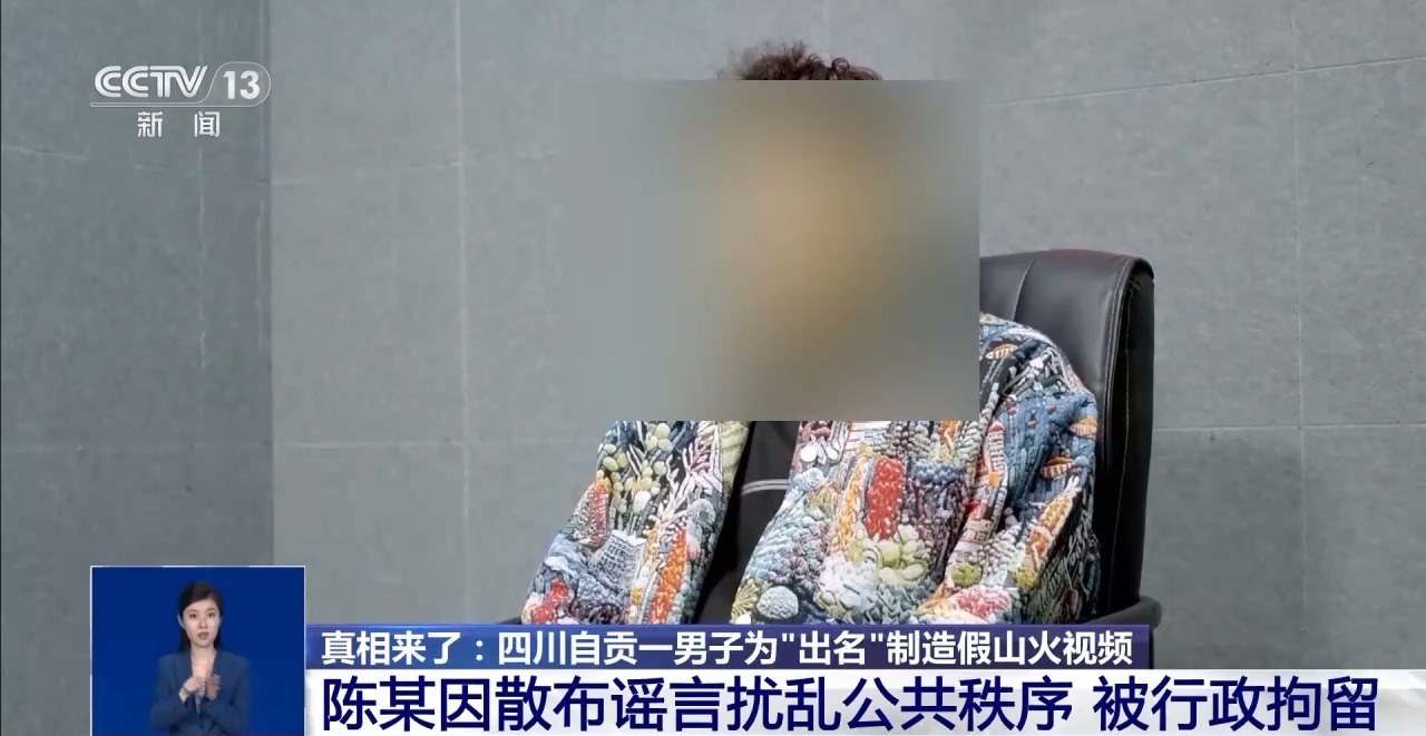 原來,陳某經營一家店鋪,平日愛在社交平台發佈作品博關注為其店鋪“引流”。當看到消防隊出警畫面後,為增加“作品關注量”,拼接了山火的畫面發佈。根據《中華人民共和國治安管理處罰法》第二十五條第一項之規定,陳某的行為屬於散佈謠言,謊報險情,故意擾亂公共秩序,被自貢市公安局貢井分局行政拘留2日。