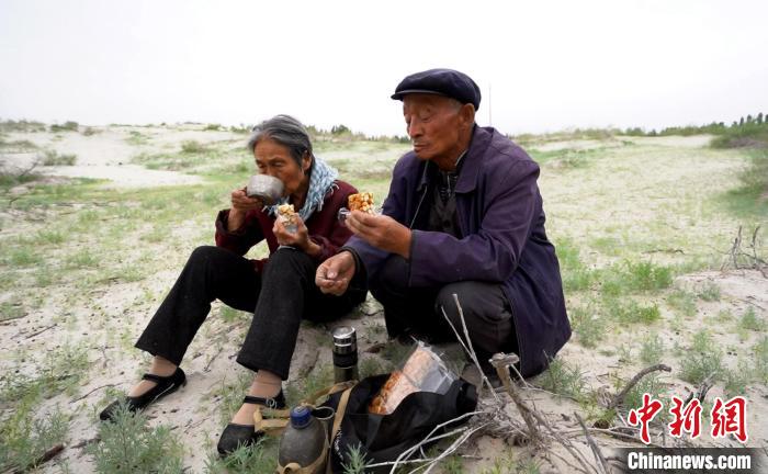 付志周依然帶着妻子從撿樹枝插栽開始,一步一俯身、一苗一瓢水,與風沙“死磕”。