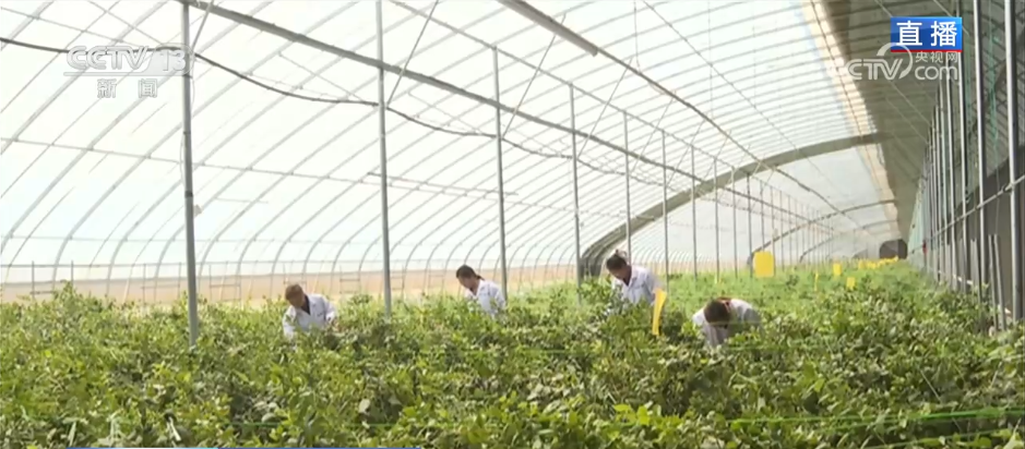 這裏就是阿拉爾市國家農業科技園,記者身後的這些樹苗就是當地首次試種成功的藍莓樹。現在,一顆顆藍莓已經掛滿枝頭,工作人員正在將新鮮的藍莓採摘打包。