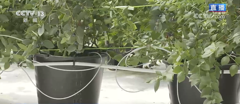 這樣的一座現代化大棚裏,除了温度、濕度、光照的控制全部自動化以外,還有很多最新種植方式被使用。在這片藍莓樹的底部有特殊灌溉管道,看上去特別像給樹幹“打吊瓶”,其實這些樹木非常健康,這些看似輸液管道的設備叫做“滴箭”,和傳統的“滴灌”灌溉系統不同,“滴箭”形似一個箭頭,尖鋭的頭部方便深扎入土壤,而中空的箭桿裏則可以不斷向植物根部輸送水和水溶性肥料。和傳統的滴灌在土層表面澆水不同,直接將水“扎入”根部會減少水在土壤表層的蒸發,降低大棚內濕度。濕度降低後,害蟲也很難繁殖,病蟲害降低到很低程度,自然不用使用農藥滅蟲,從而實現了整個大棚內的果蔬產品綠色有機。