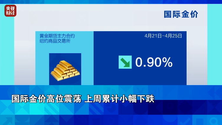 國際金價上週二盤中一度突破每盎司3500美元關口,但隨着貿易談判出現緩和跡象,市場避險情緒降温、金價回落。另外美元走強,以美元計價的金價也因此承壓。上週國際金價小幅下跌,跌幅為0.90% 。