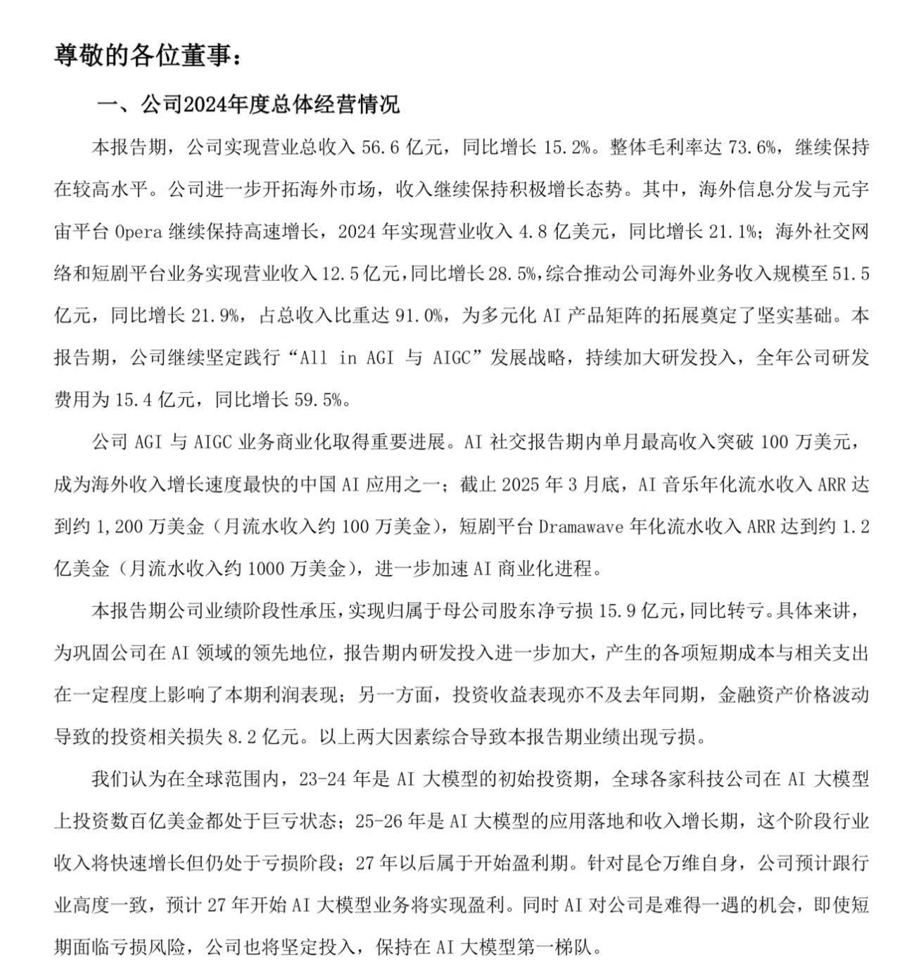 崑崙萬維2024年淨虧損15.9億元,研發投入和投資導致同比轉虧