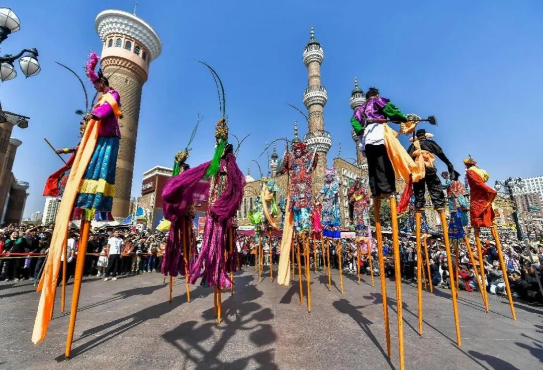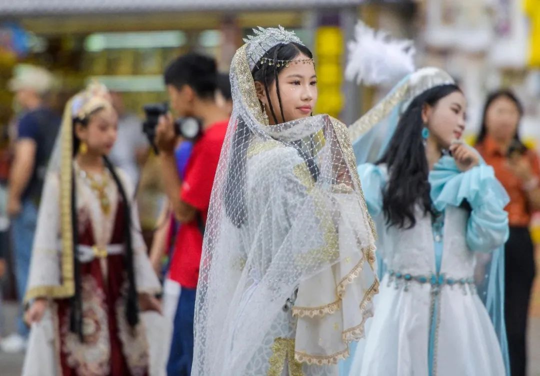 英歌舞、西寧高蹺、西安鼓樂等特色表演也先後“走進”大巴扎景區,令不少本地市民直呼耳目一新。