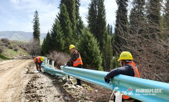 4月以來,S345線庫爾德寧—恰西—塔里木—喀拉峻公路工程項目全面啓動施工,圖為工人們正在進行護欄拆除工作。伊犁融媒體中心供圖