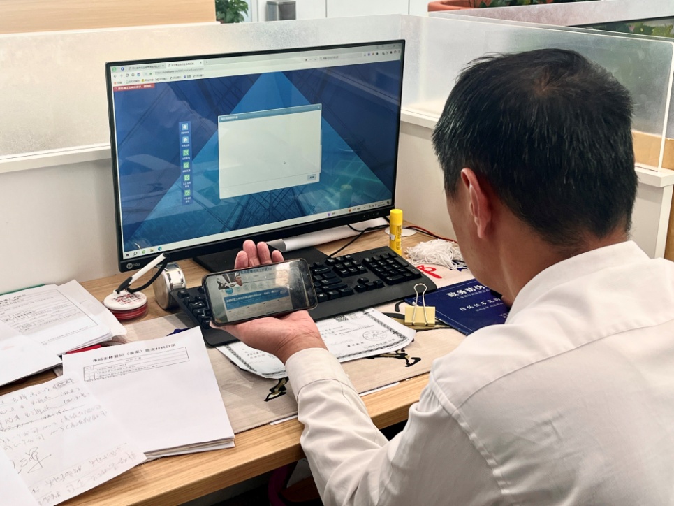 *材料“電子化流轉”,流程更精簡。*推行電子簽章、電子證照應用,申請人通過線上提交掃描件或高清照片,幫辦專員後台核驗後即時受理。目前,企業開辦、食品經營許可等高頻事項已實現“零紙質材料、零跑動辦理”。需紙質材料的,由幫辦專員代辦打印、蓋章,通過郵政EMS免費寄遞,讓數據代替企業羣眾“跑腿”。