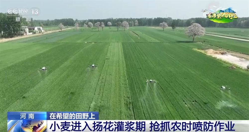 央視網消息: 春來農事忙。眼下,河南8500萬畝小麥逐漸進入揚花灌漿期。在商丘,當地農技人員搶抓農時,指導種植户做好“一噴三防”,保障夏糧穩產增收。