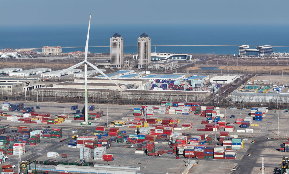 2024年3月20日拍攝的天津自貿試驗區東疆片區一景(無人機照片)。新華社記者 趙子碩 攝
