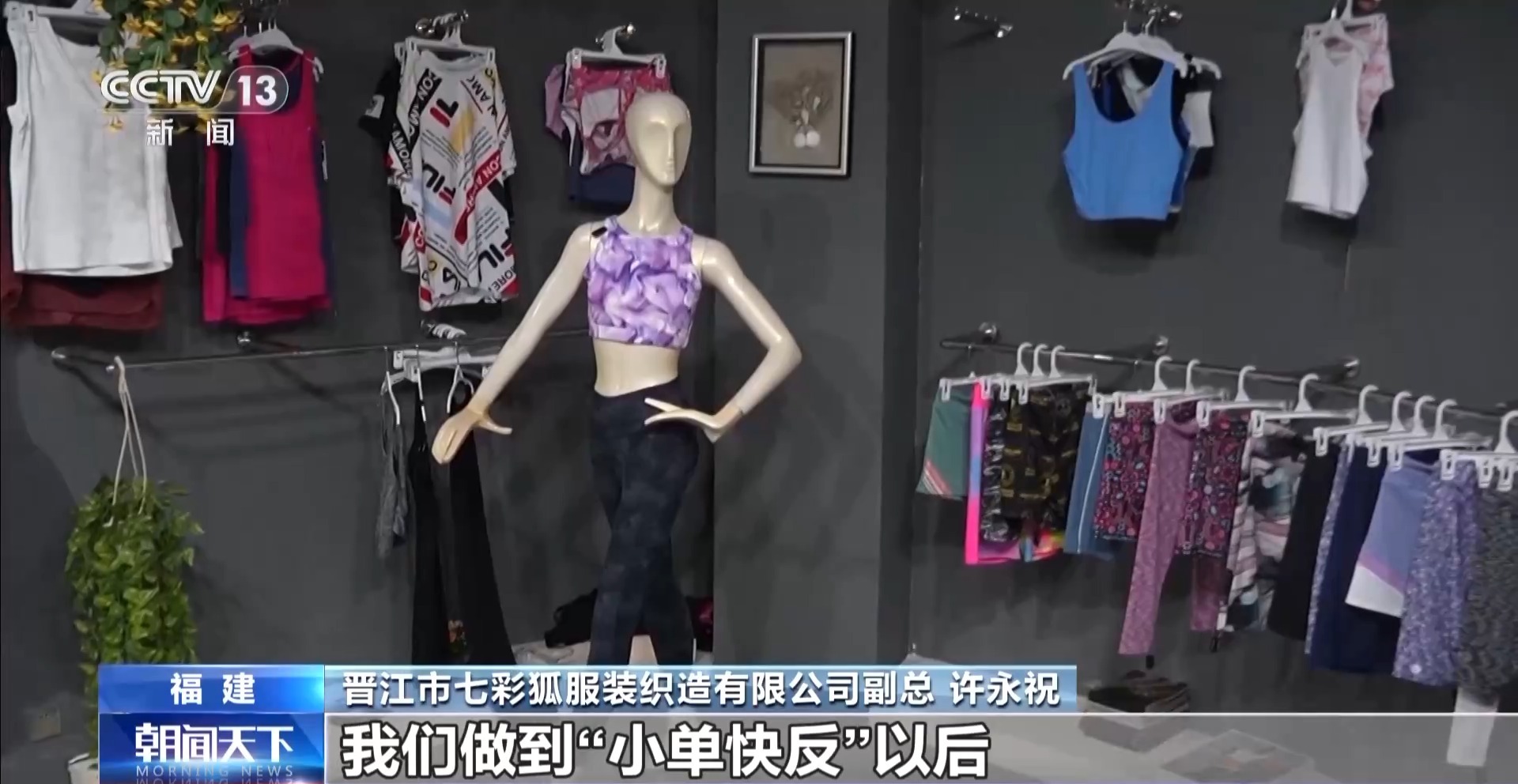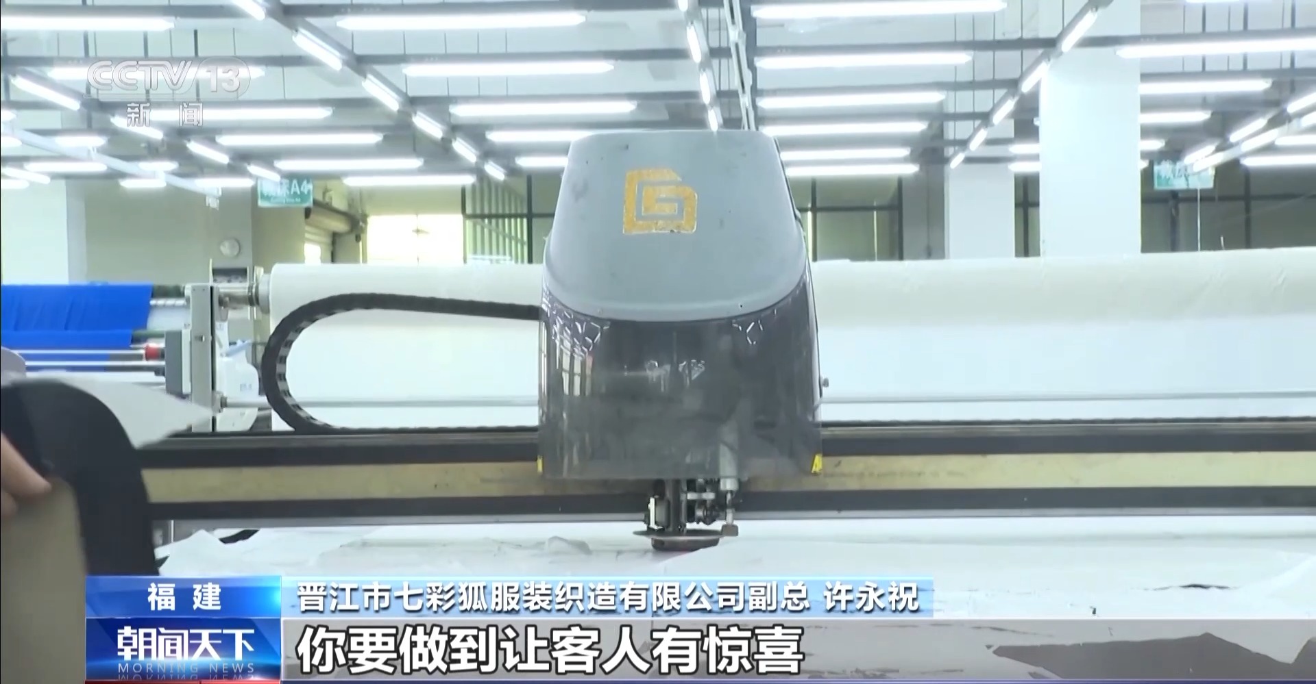 *晉江市七彩狐服裝織造有限公司副總 許永祝:*現在新興市場客户的一個最大的痛點就是庫存壓力大,我們做到“小單快反”以後,哪怕客人下10件訂單,我們也能非常快速地給客人交付訂單,整個新興市場庫存壓力的痛點沒了,無形中能幫我們公司拓展非常大的客户羣體。