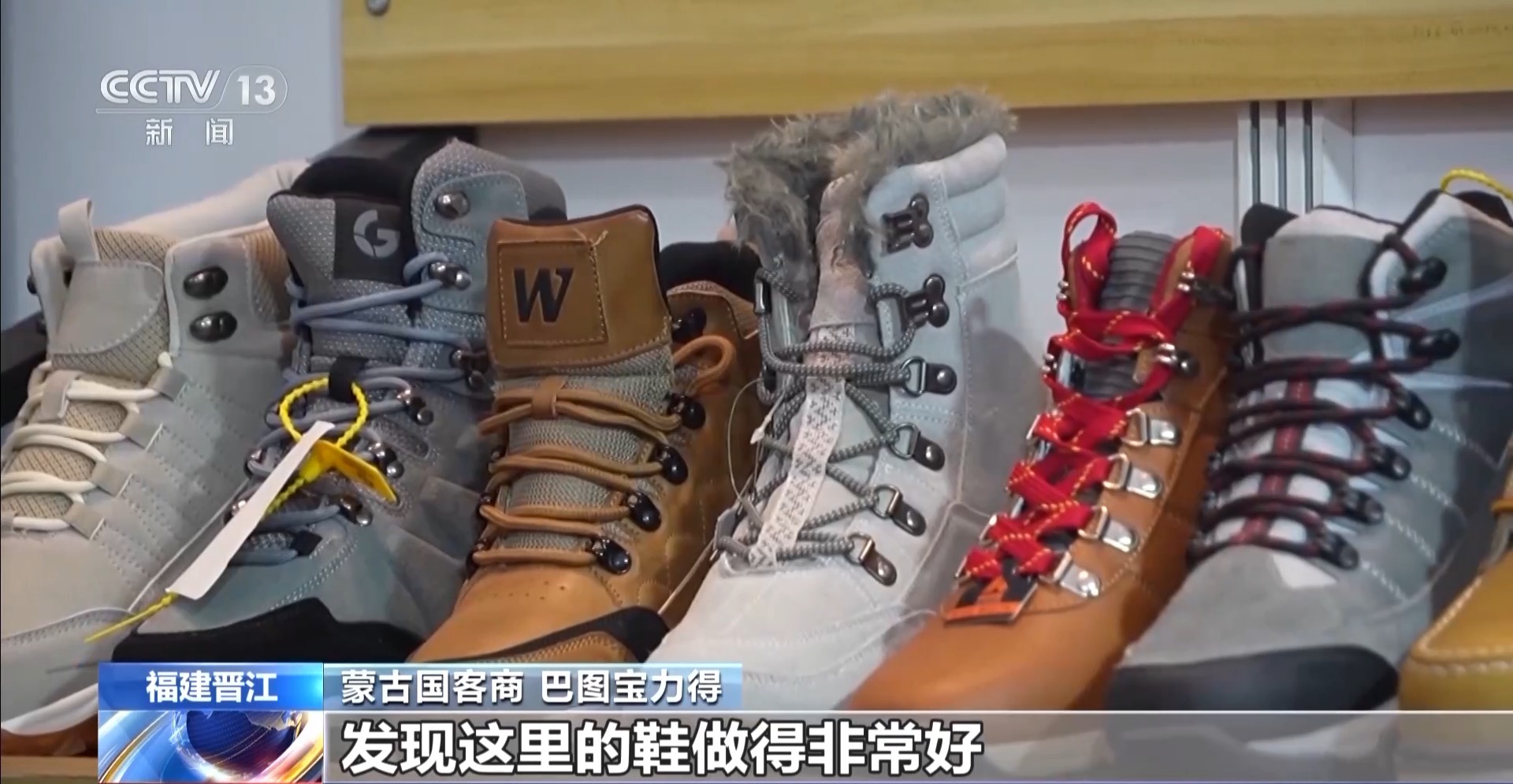*蒙古國客商 巴圖寶力得:*這裏有好多科技方面的新產品、新設備,本來我們只是來考察的,發現這裏的鞋做得非常好,適合我們蒙古國的天氣,所以一看就訂貨了。