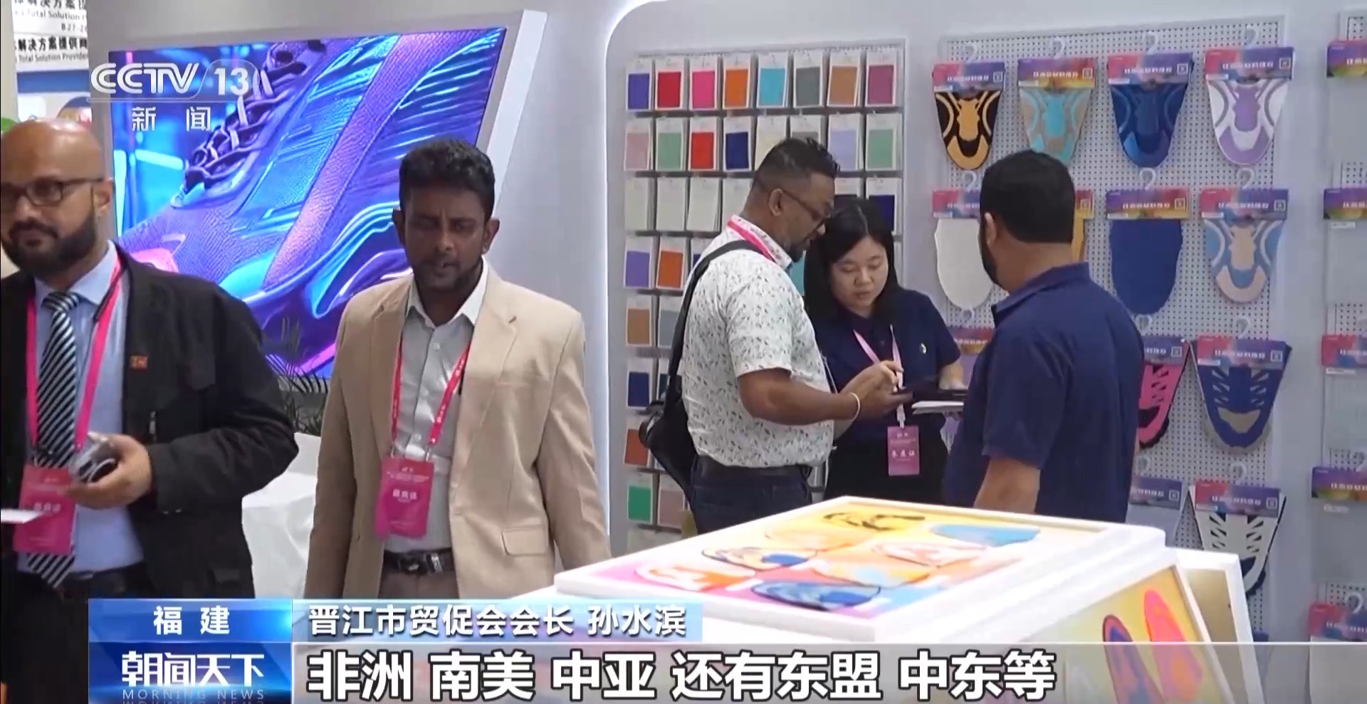 *晉江市貿促會會長 孫水濱:*我們精準針對新興市場進行重點邀約。非洲、南美、中亞、東盟、中東等一些國家地區,邀約將近700名的專業採購商,他們很明確是帶着訂單要過來尋求合作的。這一次有一個很大的特點,很多商協會抱團過來參加展會。