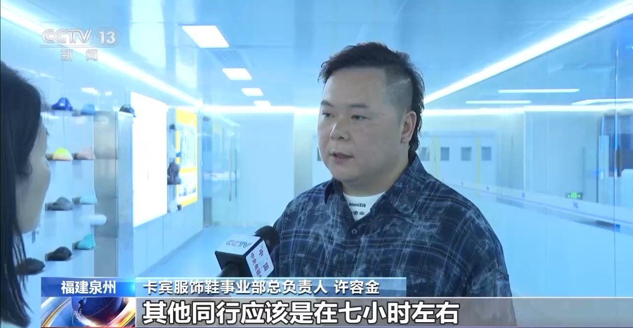 *卡賓服飾鞋事業部總負責人 許容金:*我們在兩小時可以打印3雙,其他同行應該是在七個小時左右。這批貨我們會在這個月底之前,發到意大利。
