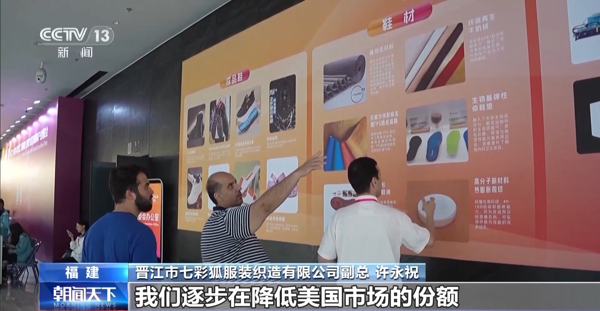 在一年一度的晉江國際鞋業和體育產業博覽會上,一家服裝企業的新品剛剛發佈,企業負責人許永祝就迎來了前來探廠的國際客商。