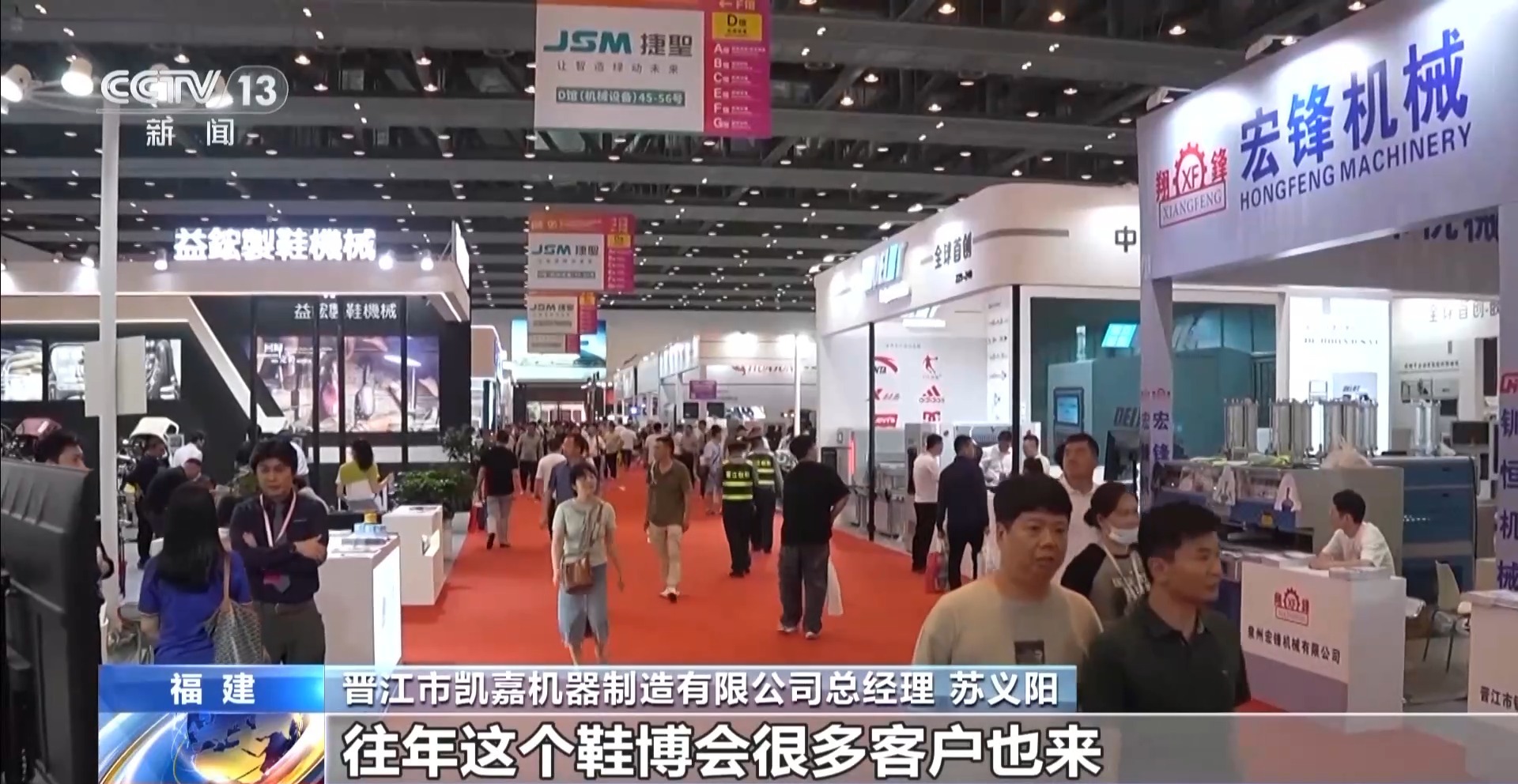 *福建省晉江市凱嘉機器製造有限公司總經理 蘇義陽:*往年鞋博會有很多客户來,不過下訂單的客户沒這麼多,今年可能是在各個原因的前提下,訂單比往年應該增加差不多一倍。