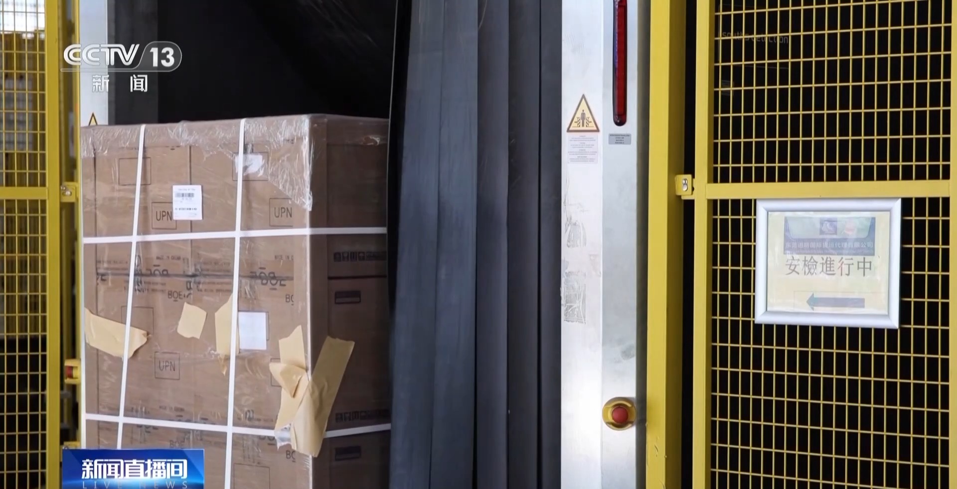 下午5點,這批出口至比利時的貨物完成了卸貨,經海關係統隨機抽檢後,進入香港機場安檢環節。