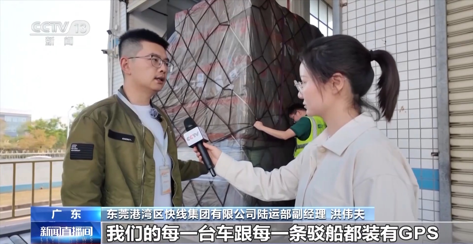 *東莞港灣區快線集團有限公司陸運部副經理 洪偉夫:*我們的每一台車跟每一條駁船都裝有GPS,其中車輛裝有電子關鎖,駁船的貨艙有紅外警報,香港海關和內地海關可以在行駛過程中,對這些貨物進行遠程監管。