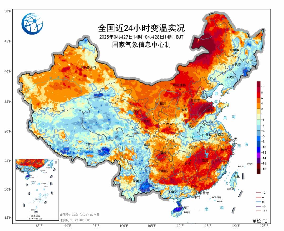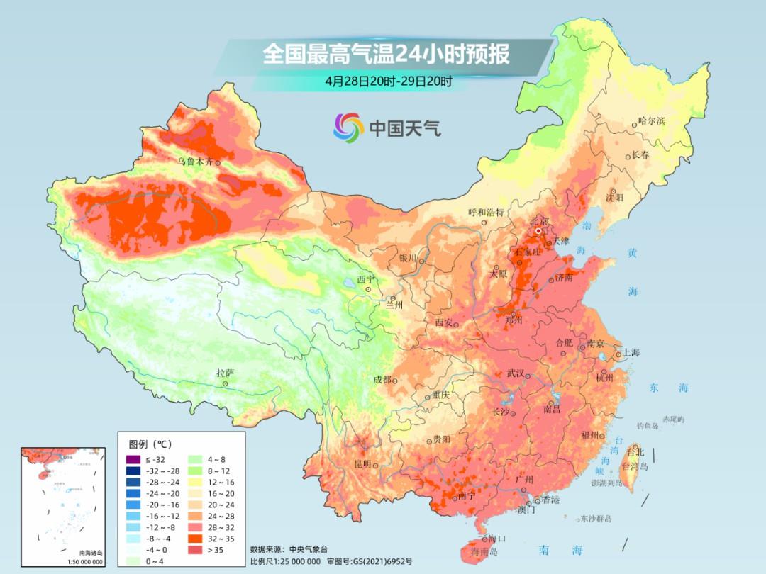 今天(4月28日)白天,我國新疆、華北大部以及江南大部等地都是陽光助力、升温為主的好天氣。其中,內蒙古東北部、山東西北部等地升温幅度在10℃以上。