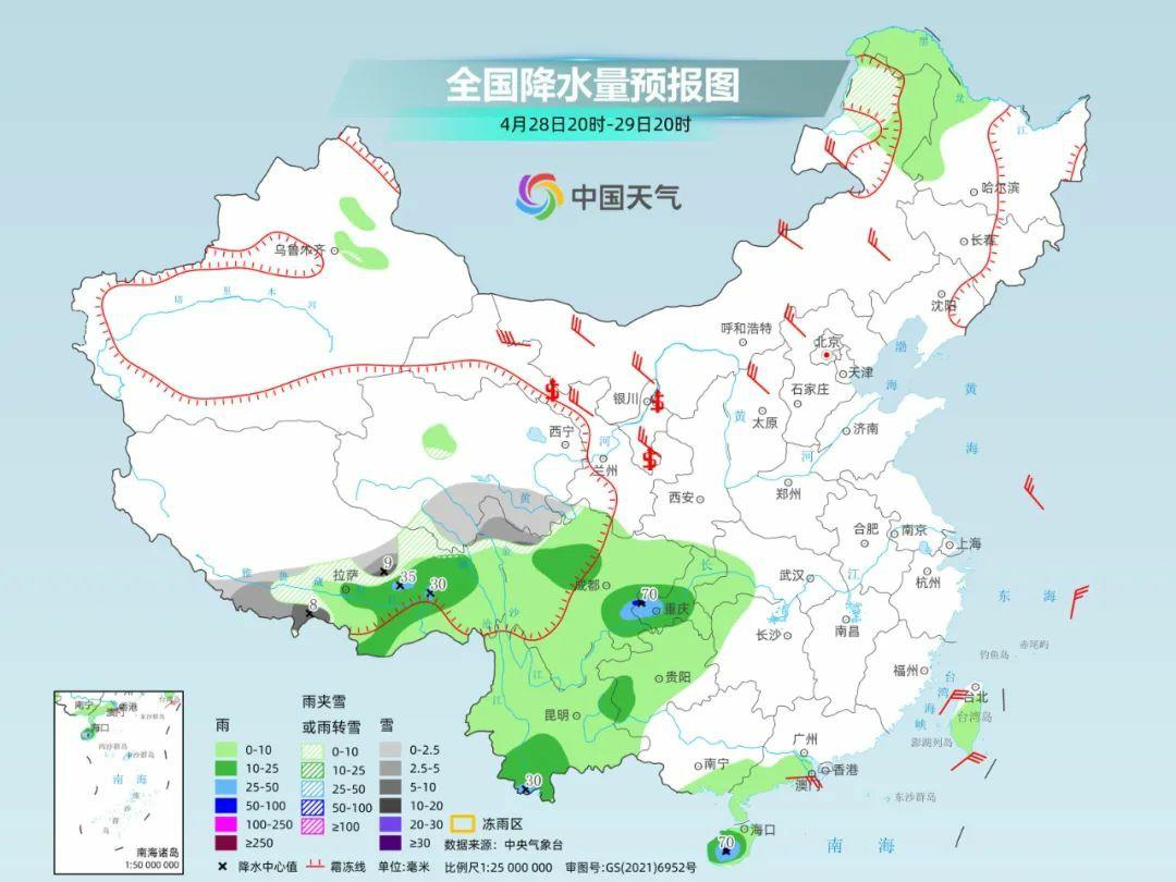 由於冷暖空氣實力並不是很強,因此總體來説這輪降水強度並不大,不過在貴州南部、廣西北部、廣東北部等地的部分地區仍有大雨、局地暴雨,並且還需防範時空分佈不均的強對流天氣。