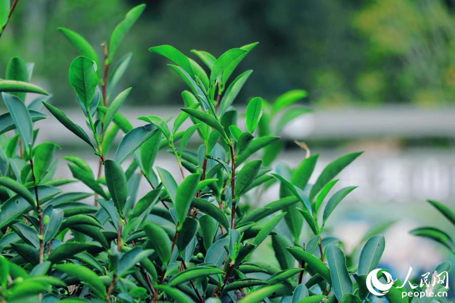 武夷山市星村鎮燕子窠生態茶園內,茶芽擠滿茶樹梢頭。人民網 李唯一攝