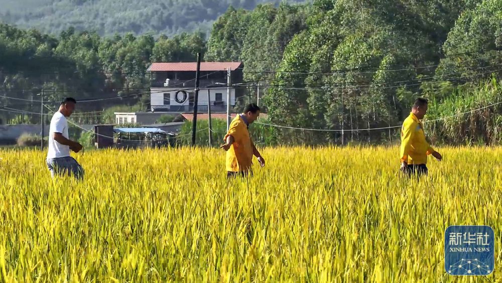 在廣西柳城縣,彭春林(中)和工友幫助推進“旱改水”項目建設(2024年8月27日攝)。