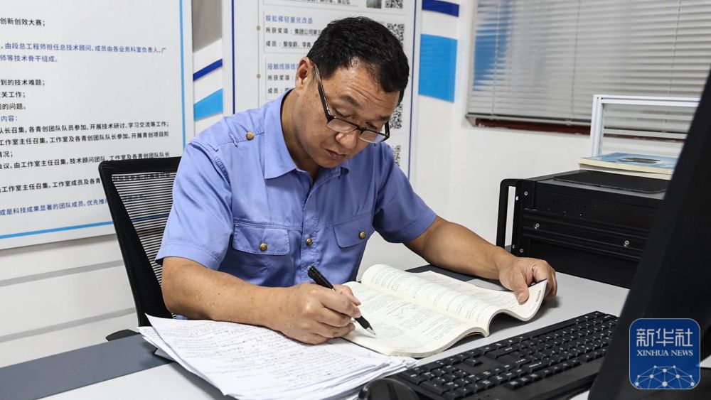 彭春林在彭春林創新工作室閲讀專業書籍(4月25日攝)。