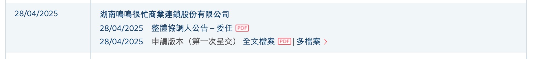 【環球網財經報道】4月29日消息,據港交所文件顯示,湖南鳴鳴很忙商業連鎖股份有限公司向港交所遞交上市申請。