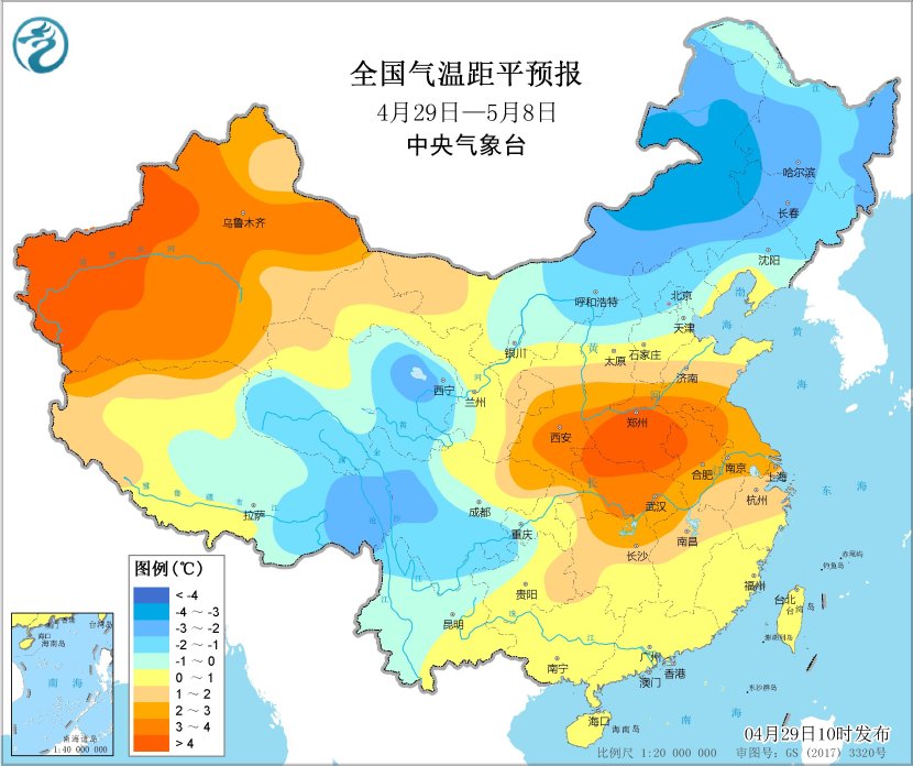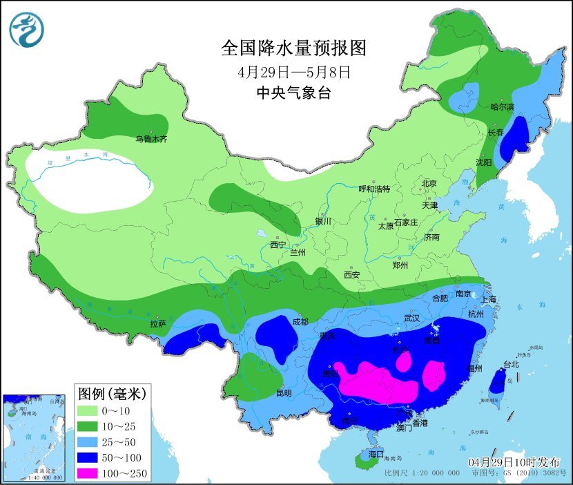 未來10天(4月29日-5月8日),西南地區東部、江漢南部和東部、江南、華南及西藏東南部等地累計降水量有30~70毫米,部分地區有80~120毫米,局地超過150毫米;內蒙古東北部、東北地區、新疆西北部等地的部分地區累計降水量有5~20毫米,部分地區超過30毫米;上述地區累計降水量較常年同期偏多2~6成,局地偏多1倍以上,我國其他大部地區降水偏少。