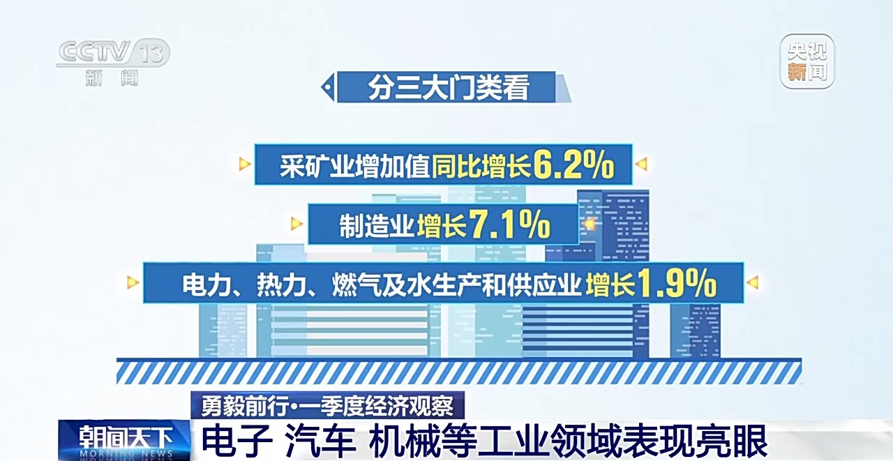 今年一季度,電子、汽車、機械三大領域齊頭並進,加速工業經濟增長,新興動能持續釋放強勁牽引力。