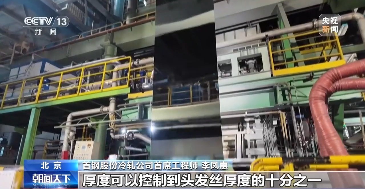 *首鋼股份冷軋公司首席工程師 李鳳惠:*鋅層厚度均勻性從原來的90%,基本上提高到99.9%,厚度可以控制到頭髮絲厚度的十分之一。