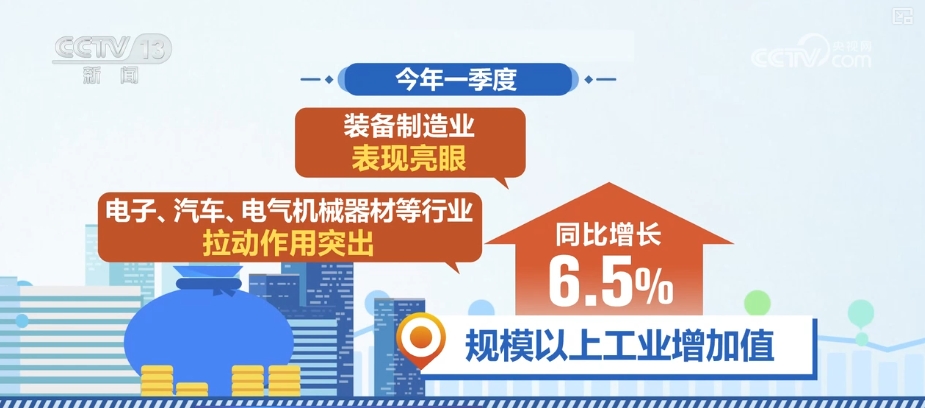工業和信息化部數據顯示,2025年一季度,規模以上工業增加值同比增長6.5%,裝備製造業表現亮眼,電子、汽車、電氣機械器材等行業拉動作用突出。
