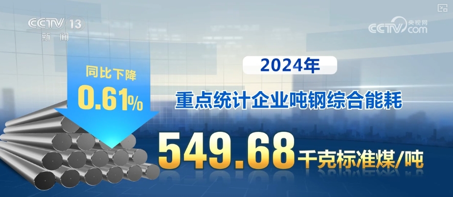 數據顯示,2024年,重點統計企業噸鋼綜合能耗為549.68千克標準煤/噸,同比下降0.61%;噸鋼可比能耗降至480.96千克標準煤/噸,同比下降1.75%。